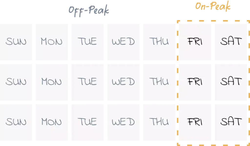 Whether you want a prime time Friday-Saturday slot, or the 20% discount of an off-peak day, we have you covered. Our simple two-tiered pricing schedule allows you to choose a day which works best for you and your budget.