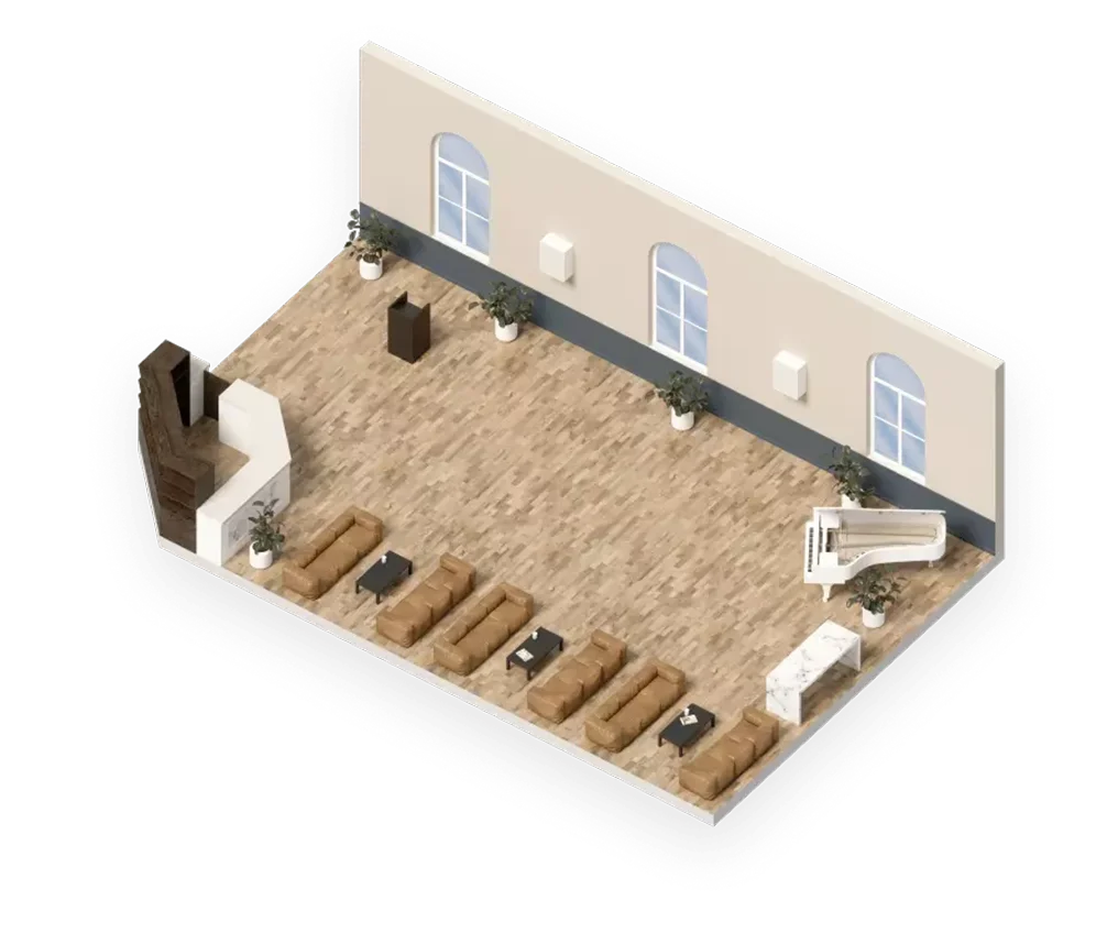 Events for between 40-60 people including; weddings, birthdays, wedding anniversaries, unplugged acoustic sessions, corporate events, team meetings, and more.