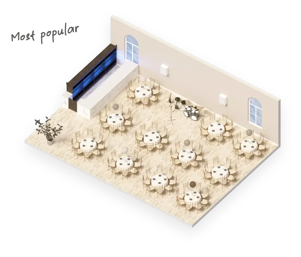 Events for 80-180 people including; weddings, conferences, office Christmas parties, birthday celebrations, concert performances, anniversaries, and more.